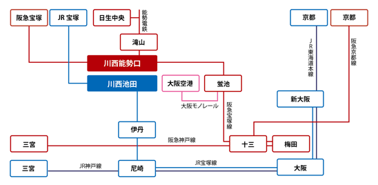 阪急電鉄、能勢電鉄川西能勢口駅東口より徒歩約5分