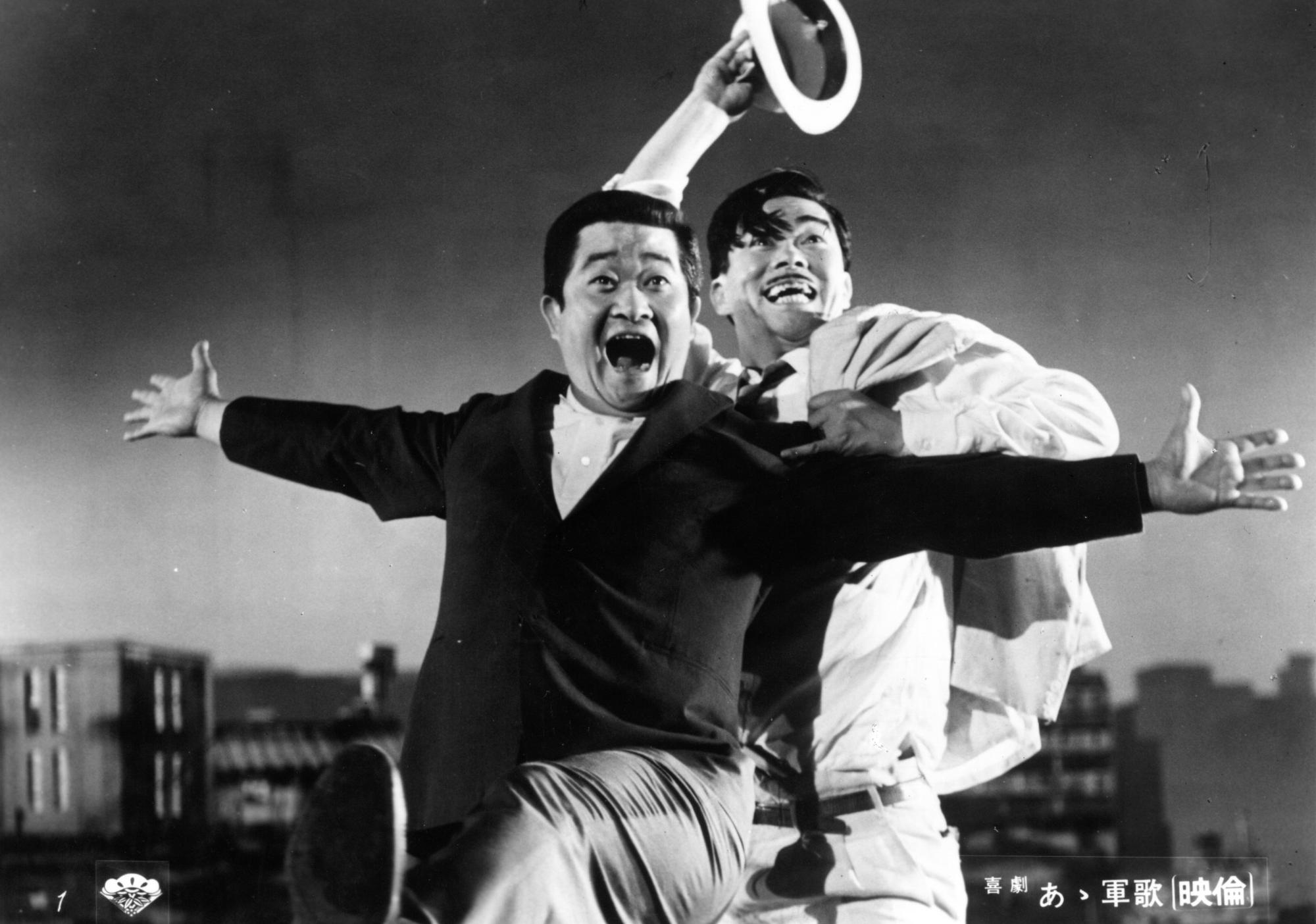 戦争中、精神障害の真似をしてわざと野戦病院に入り、死を逃れた二人の男は、その後、戦没者をまつる神社へ遺族を案内する怪しげな観光ガイドとして暮らしていた。その男たちのもとへお婆さん、未亡人、少女、ヒッピー風の男が次々と迷い込んでくる奇妙な生活を描いたこの作品は、1960年代以降の松竹喜劇を支えた前田陽一監督の代表作である。そこに息づく屈折した批判精神には師匠の渋谷実監督の影響も垣間見える。その作風について、主演のフランキー堺は、「旅行」シリーズの瀬川昌治監督の「軽喜劇」に対する、前田作品の「重喜劇性」と説明して敬意を表した。劇中の所々に軍歌が挿入されて作品のリズムを築いているが、この映画で「歌」が作品の血肉となっているように、前田監督は歌謡映画にも定評があり、『進め! ジャガーズ 敵前上陸』(1968)などのヒット作を送り出した。